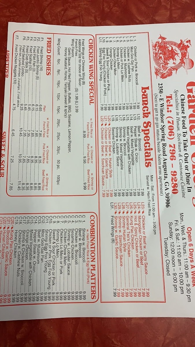 Garden Cheng Chinese Restaurant Menu